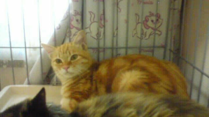 捕獲翌日のバニラ(トラ猫でアメショーミックス)