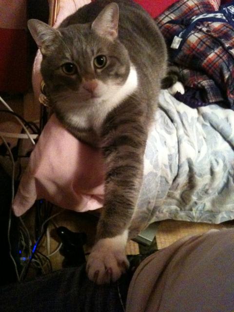 PCに夢中の私に「僕を構いなさい」と言う手。
