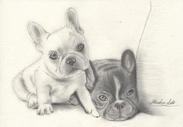 白と黒のパグのコントラストがイイナと思って、鉛筆(モノクロ)で描きました。