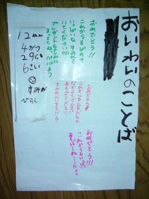 どーやら娘が自分の誕生日に家族からお祝いの言葉を書いて欲しい様です。