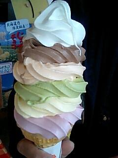 上から、バニラ、チョコ、メロン、抹茶、チーズ、ラベンダーと