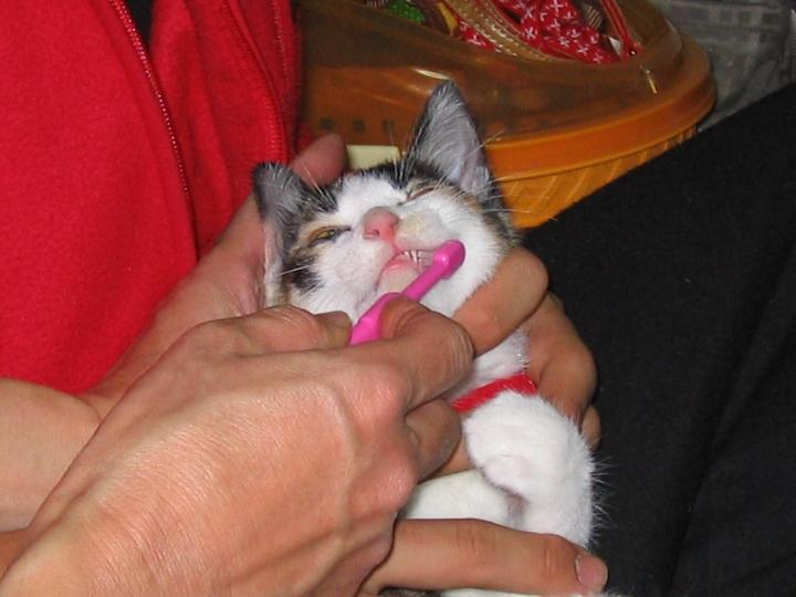 動物病院で、室内で飼う猫は、ネズミなどを取って食べる猫と違って歯が痛んだり歯肉炎になりやすいので、歯磨きをさせましょうと言われ、歯磨きジェルと歯ブラシを貰ってきました。キキは、本格的にベットで寝る前に歯磨きをちゃんとやっています。