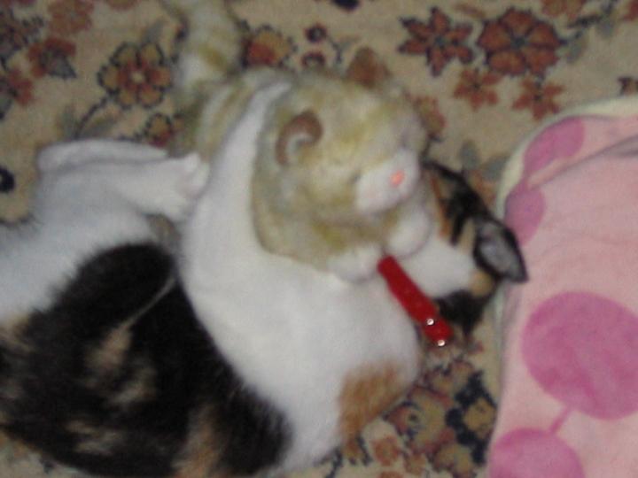 お友達代わりにとぬいぐるみの猫をそばに置いたら・・