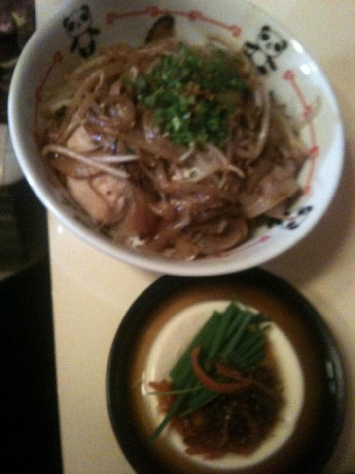 タマネギ炒めてロース焼いてタレかけて、モヤシ放り込んで