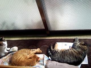 うちのにゃんずですが、のんびりしたお正月をすごしていたようです。ぬくぬく生活です。写真の隅に移っているチャコ。控え目な性格が出てます。