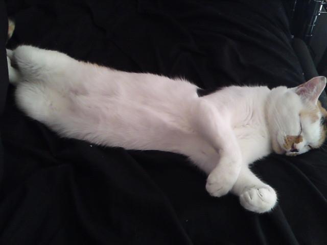 丸くなっているのかと思いきや、グデングデンに伸びきって寝ています^^