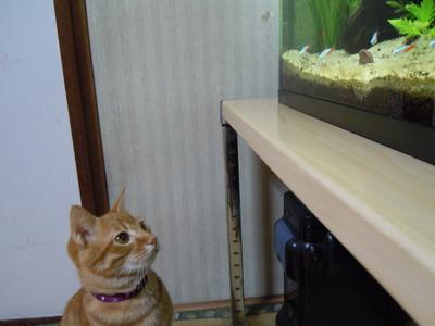 あまり首輪が見えませんが・・・相変わらず熱帯魚を狙ってます^^;