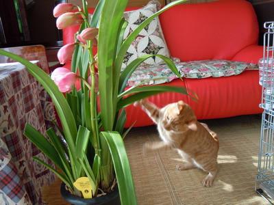 欄の葉っぱにパンチ!パンチ!