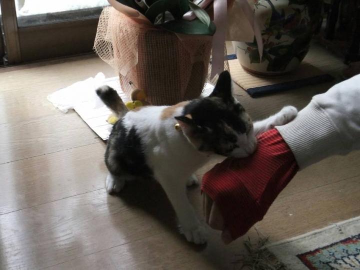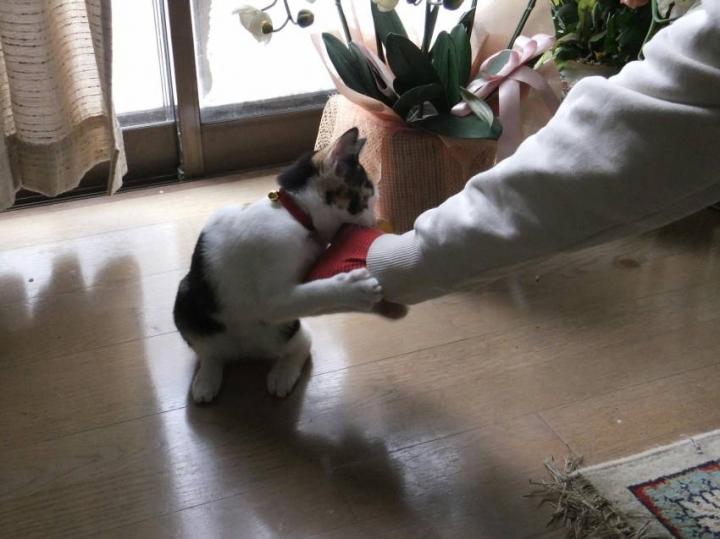 「部屋中暴走してたのを止めたら、じゃれて噛みついてきたのに・・」