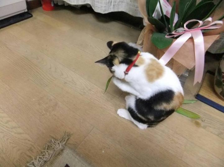 「植木鉢の葉っぱいたずらして、食べてる!!」