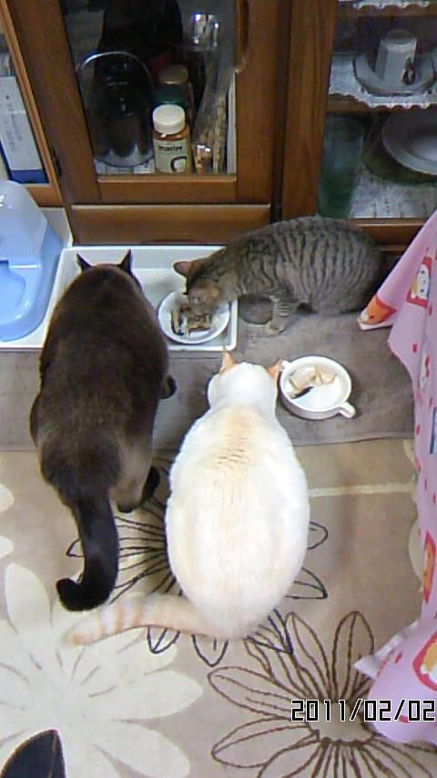 一番小さい ソラちゃんが最後まで粘って、すっかり食べてしまいます。
