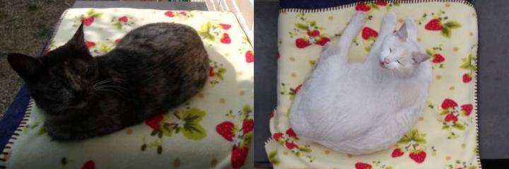 猫の匂いもついてるから、使わないだろうと思ってたけど、気持よさそうに寝てたから、膝かけを買って座布団の上にかけてあげました。