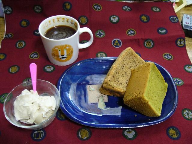 シフォンケーキ(紅茶と抹茶)西表島の黒糖を使ったアイス♪