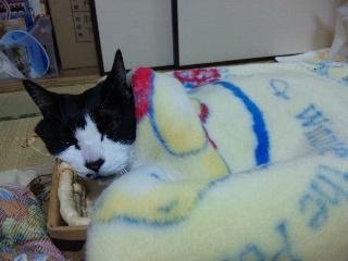 その日の夜、なんとか流動食を注射器で食べたました。動くのも億劫で常に目をつぶっている状態でしたが、トイレはがんばってトイレまで行くチーくん。。。私は夜に一度帰宅したのですが、今朝母からの電話でちーくんの息の仕方がおかしい、苦しそうに背中で息をしているとのこと、急いで実家に戻り、また、かかりつけの病院にいっても同じ診断が下ると思い、隣町の総合病院へ行きました。