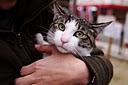 会場では、わんにゃん会の方々がケージの中にトイレや湯たんぽをご用意くださっており、当方も皆様のアドバイスのおかげで、カイロやブランケット等を持参で行き、トラトラちゃん・あごチョビちゃん(改名を検討中)も風邪引かず無事でした。私もダルマの様に重ね着してましたので、寒さ対策は万全でしたが…。