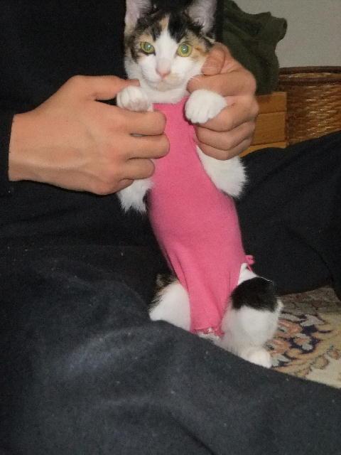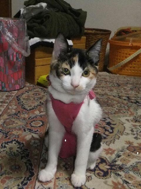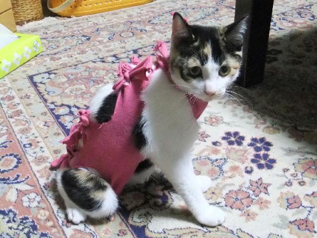 エリザベスカーラーが大きくて重くて大変そうだったので、みなさんのまねをしてみました。