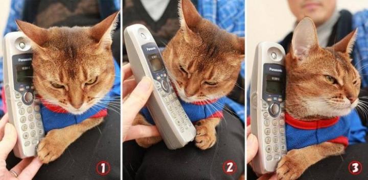① もしもし、み~ちょ家ですが はい……はぃ…。