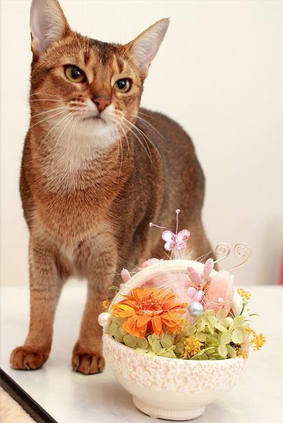 このお花はプリザーブドフラワーでして、昨年の誕生日の際にみ~ちょを