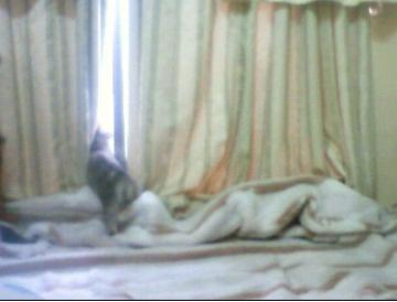にゃ~ にゃ~ と すずめさんに 話し掛けるので