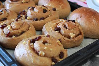 こちらは全粒粉を使った 胡桃とレーズンの渦巻きパンとロールパンです