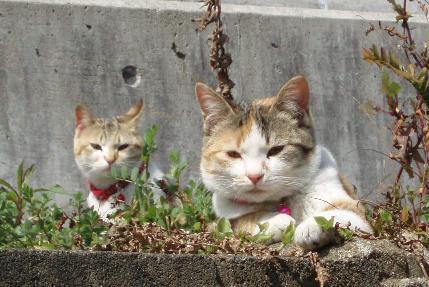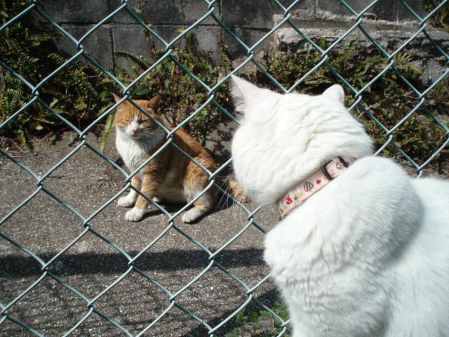 さすがに二匹は近づこうとするとすぐに逃げますが、ご覧のようにお揃いの首輪をもらっていました。