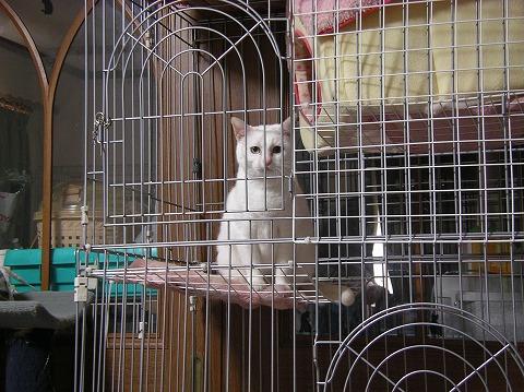 本日 保護猫部屋から みんなの部屋??に 保護猫ましろサンケージ移動しました。