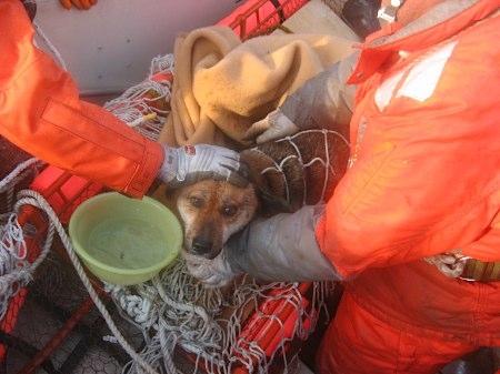 巡視艇で、宮城県の塩釜港に搬送。飼い主が分かるまで県動物愛護センターで保護されていましたが、