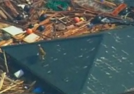 宮城県気仙沼市本吉町の沖約1.8キロの海上で、流された屋根の上で発見された