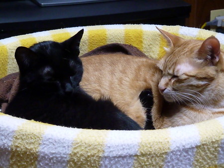 昨夜はくーちゃんだけ隣の部屋の猫ベッドで寝ていた