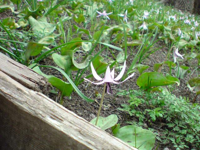 それと、近所にあるかに山キャンプ場の敷地内にかたくりの花が咲いていて、珍しいようで沢山の観光客が見に来ます。私もしばらくぶりに行って見ました。沢山の花がみんな下を向いて咲いていて、綺麗で面白かったです。