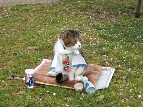 てぬぐいをかぶせられます、これが唐草模様・・どうみても『どろぼう』に
