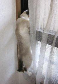 この窓の外は建物の共同通路の為、窓辺に猫が居座る事で