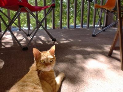 ベランダに張り巡らすネットが見つからないので、今は短時間だけ側に