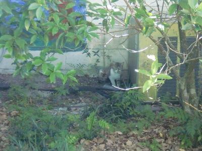 食べ物とお水は家の中にあり、母猫は自由に出入りしています。