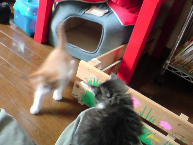 トイレの事はちょっと様子見ですが、動きがすばやくなりすぎて、携帯のカメラではぶれちゃって撮れないことがここ数日の私の悩みですかね。まったくすばしっこいったら。