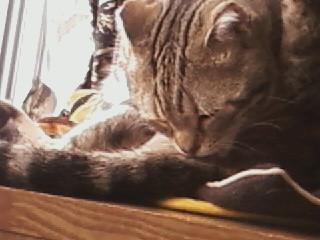 日曜日の午後、毛づくろいをしていた勘助、途中で熟睡・・・
