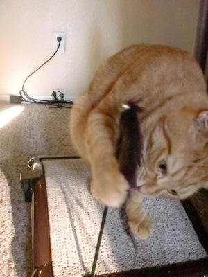 早速、置いたらオマケの猫じゃらしに夢中(またたびの粉がついていた)