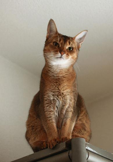 ちんまりと冷蔵庫の上の棚でポーズを取ってるその姿