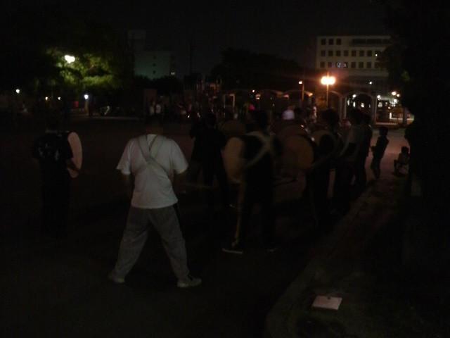 駐車場に車を止めたら、ドンドコドンドコ聞こえる。