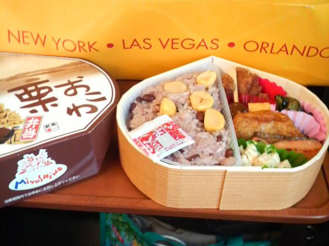 岡山で買った栗おこわ弁当。美味しかった。