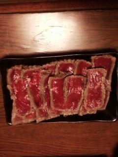 牛のたたきは、勘助の大好物ですが、市販の物(スーパー等の惣菜)は玉葱が付いていたり、塩分が気になるので、勘助が食べるものは馴染みのお肉屋さんで注文(味付け等していない)した物か手作りの物を与えます。