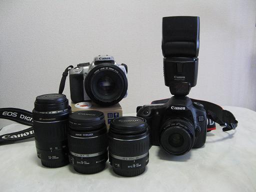 左奥のメタルチックな本体は 4年前に購入したEOS KISS Digital Xで
