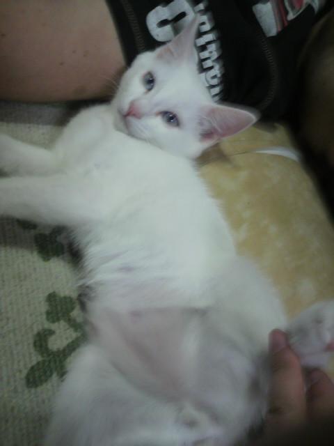 涼しい場所を求めて移動するアロハ。フローリングでゴロゴロしております。なぜか顔は小さいのにおなかがタプタプアロハ。顔が小さいので、