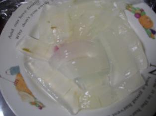 これを皮を剥いて3分ほど茹でて、氷水にさらします。
