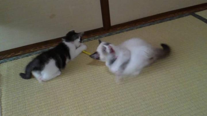 でも、子猫の時に充分遊んで、所詮おもちゃとわっかっているのか、すぐに子猫のものになりました。