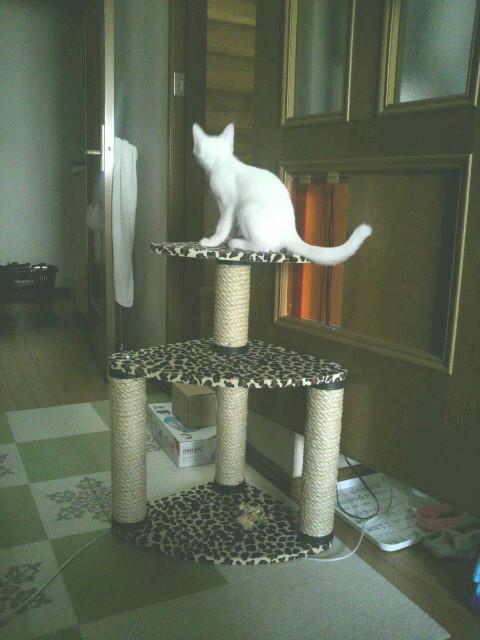 今日は、注文していたアロハのネコタワーが到着しました。大阪猫仕様のヒョウ柄です。(^o^)まだアロハが小さいので三段までの分にしました。