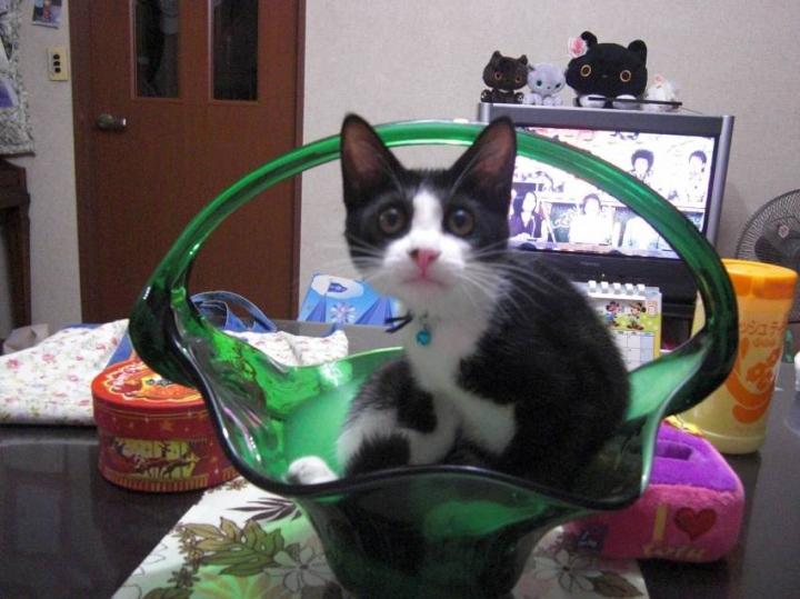 やはり、というかうちの果物をいれるバスケットに入っていきました