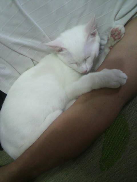 人目見たい相葉く~ん なんてわめいている横でアロハは気持ちよさそうにゴロゴロ寝ています。アロハは土日はパパが長い間一緒にいるので、うれしそうです。三人でいるときは、本当にいつもよりうれしそうです。