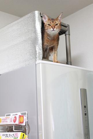 背の高くなった冷蔵庫に乗らないように…と、ラックにアルミシートを貼り付け
