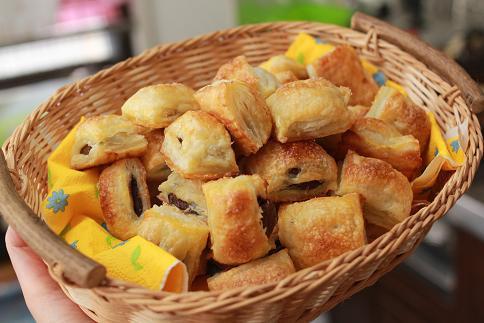 材料は冷凍パイシート4枚、一口チョコ36個 卵、グラニュー糖…以上!